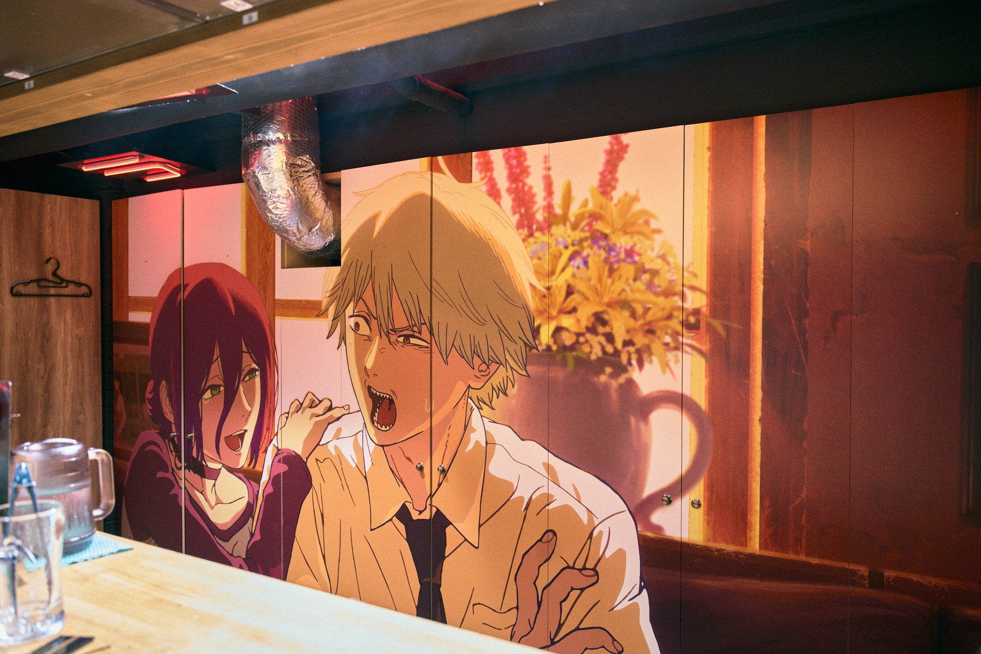 本コラボレーションにより、渋谷店の壁面には4m x 2mの巨大ビジュアルが登場。そのほかスタッフのユニフォームや店内看板にいたるまで、全てが「チェンソーマン」仕様に。作品の世界観に没入できる特別コラボをぜひお楽しみください。