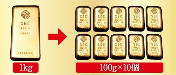 切れたネックレス、片方なくしたピアスなど、ご自宅で眠っている貴金属をその場で買取り。査定のみも承ります。お持ちの1kgのインゴットを100gのSGCオリジナルバー10個に加工いたします。