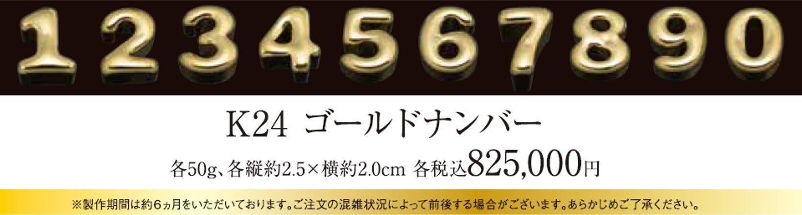 今年の新商品である「K24 ゴールドナンバー」は、とても好評をいただいており、現在お渡しまで約6か月お待ちいただいている状況です。お誕生日やラッキーナンバーなど、お好きな数字を「純金」で残しませんか?
