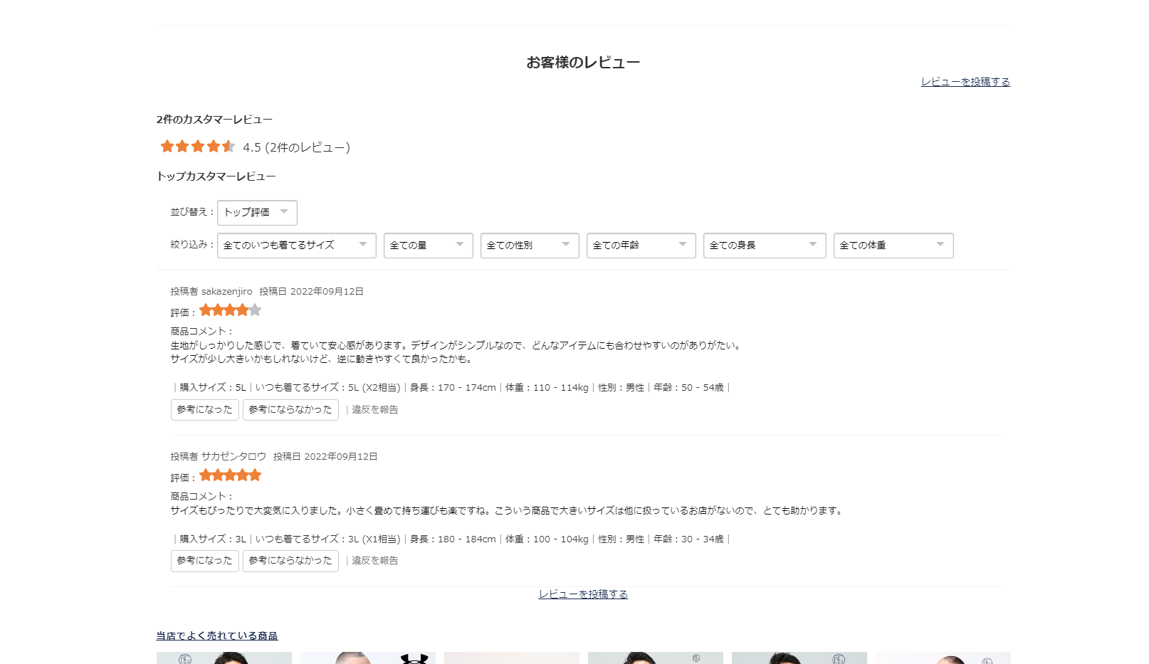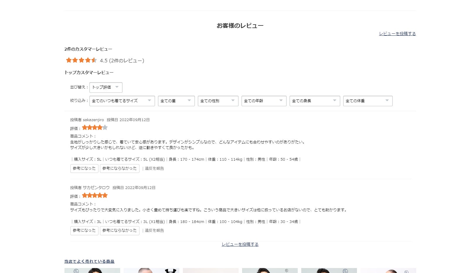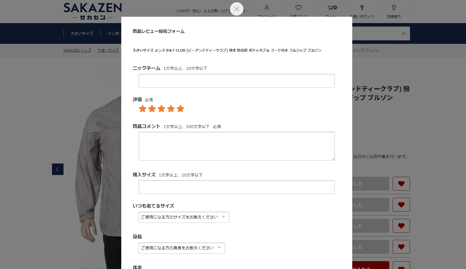 五段階で評価し自分自身に近い体型や年齢・利用シーンなどのレビューを参考に購入検討をすることが可能となります。お客様に対してより多くの“リアルな声”、“価値ある情報”を提供し購入決定を後押しするだけなく、店舗の体験に変わってオンラインショッピングでも信頼性を高めていきます。レビューを書いていただいた方には公式ECストアで利用できるサカゼンポイント10ポイントプレゼントするなど、弊社のスローガンである「全ての人に楽しさと幸せを」の実現向け、今後も新たなサービスを拡充して参ります。