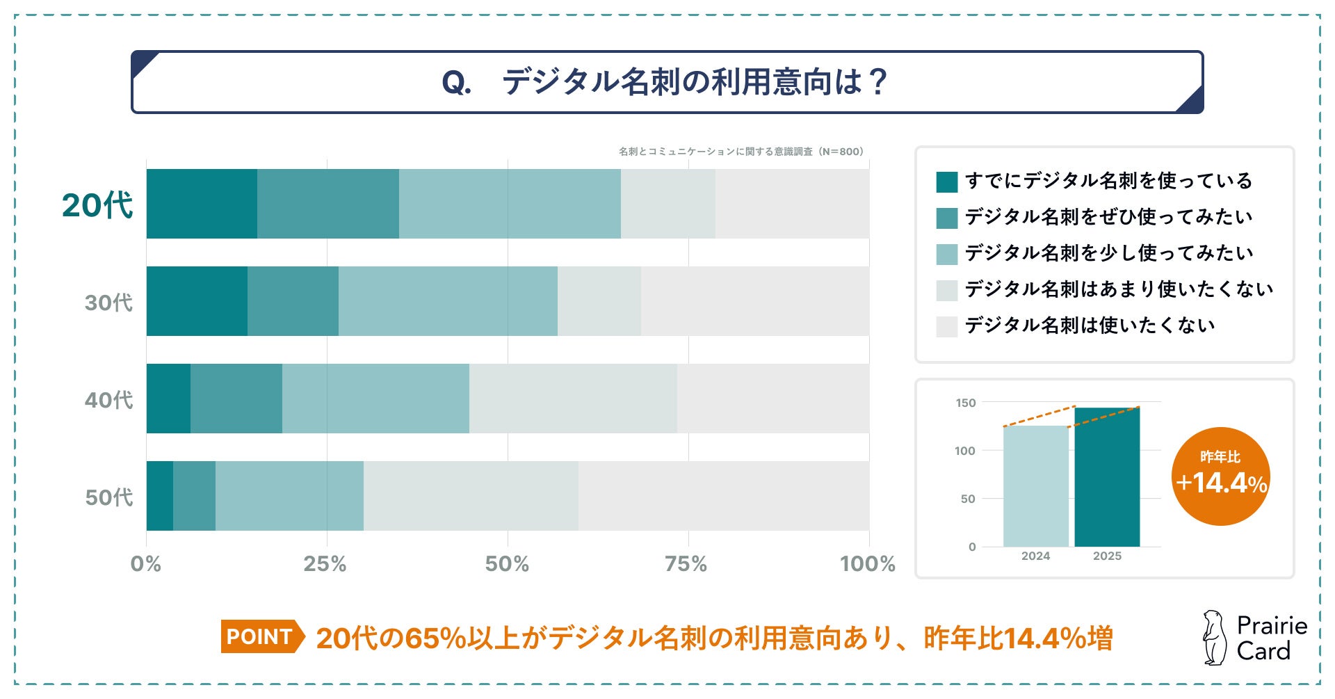 ・昨年比14.4%増。 20代では65.4%がデジタル名刺の利用意向あり