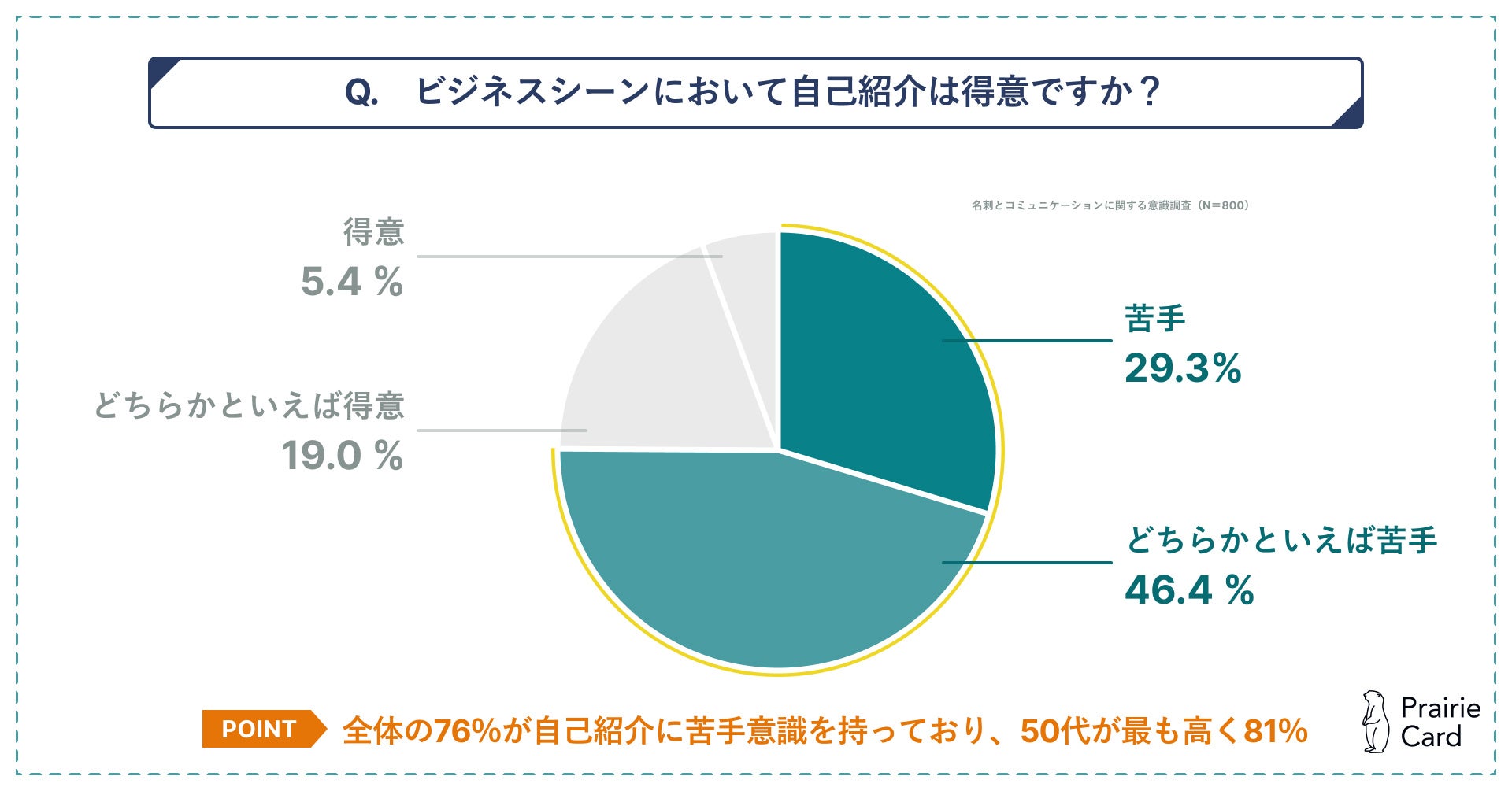 ・約76%の人がビジネスシーンでの自己紹介に苦手意識