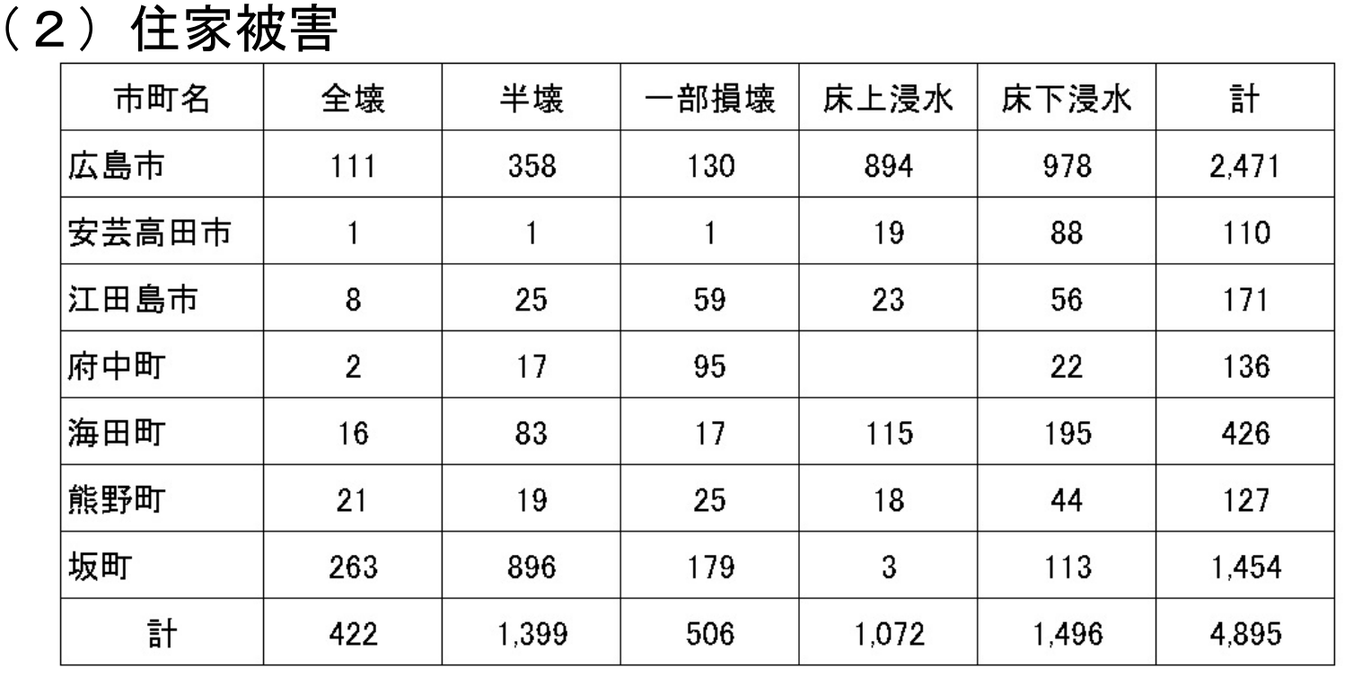中国エリアでは、大雨による被害や南海トラフ巨大地震による津波を想定した改訂が行われています。平成30年7月に発生した豪雨では、広島県の多くの住家が被害を受けました(※9)。