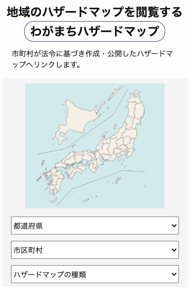 国土交通省が運営する「わがまちハザードマップ(※5)」では、全国のハザードマップの状況が公開されており、いつでもお住まいのエリアの最新の状況を確認することができます。