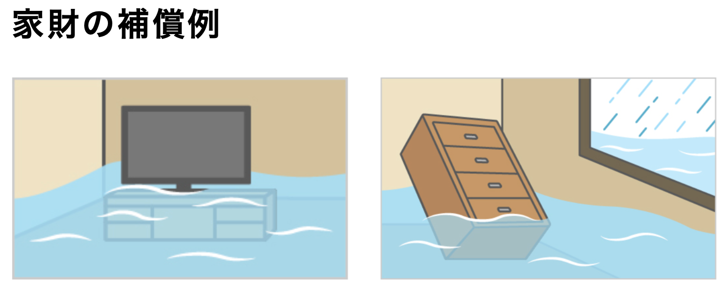 ソニー損保の火災保険では、台風や暴風雨などが原因で起こる洪水・高潮・土砂崩れなどにより建物や家財に損害が生じた場合に補償を受けることができます。加入している火災保険を確認し、家財と建物の補償範囲を見直すこともおすすめです(※8)。