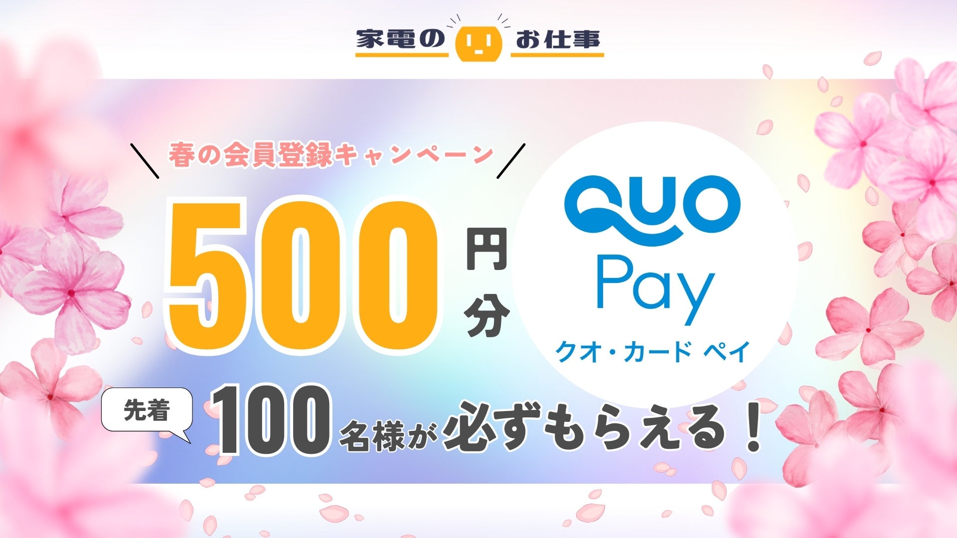 求人サイト「家電のお仕事」では、初回会員登録をしていただいた方々を対象に、QUOカードPay500円分をプレゼントするキャンペーンを開催中です。