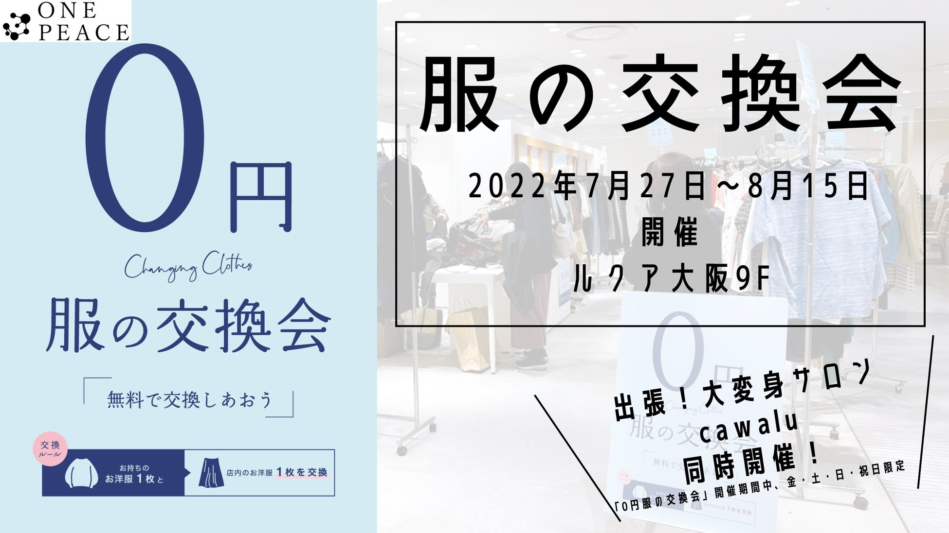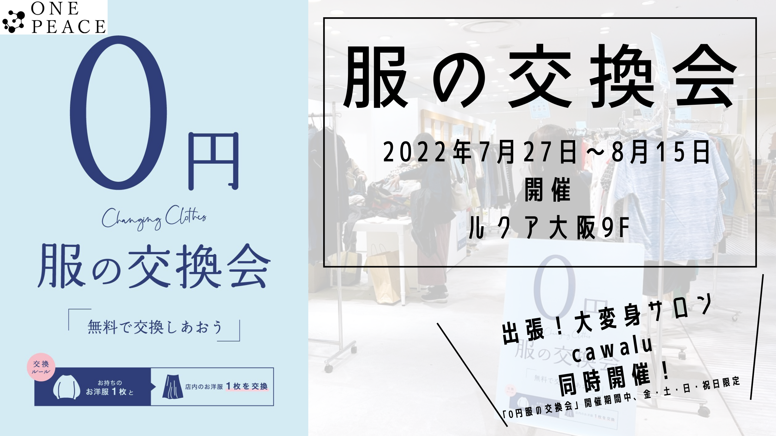 2021年7⽉有楽町マルイでの開催を⽪切りに、関東を中⼼に大盛況を見せ、延べ1万人以上が参加している『服の交換会』のがルクア⼤阪で開催される運びとなりました。