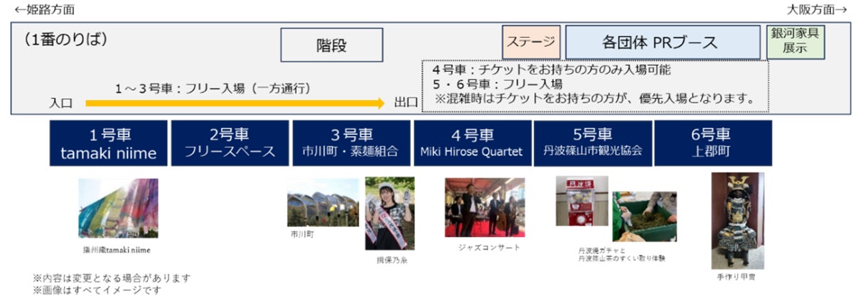 内 容:WEST EXPRESS銀河の車内およびホーム上にて、兵庫県内の魅力あふれる特産品のPRコーナーや各種コンテンツをご用意いたします。