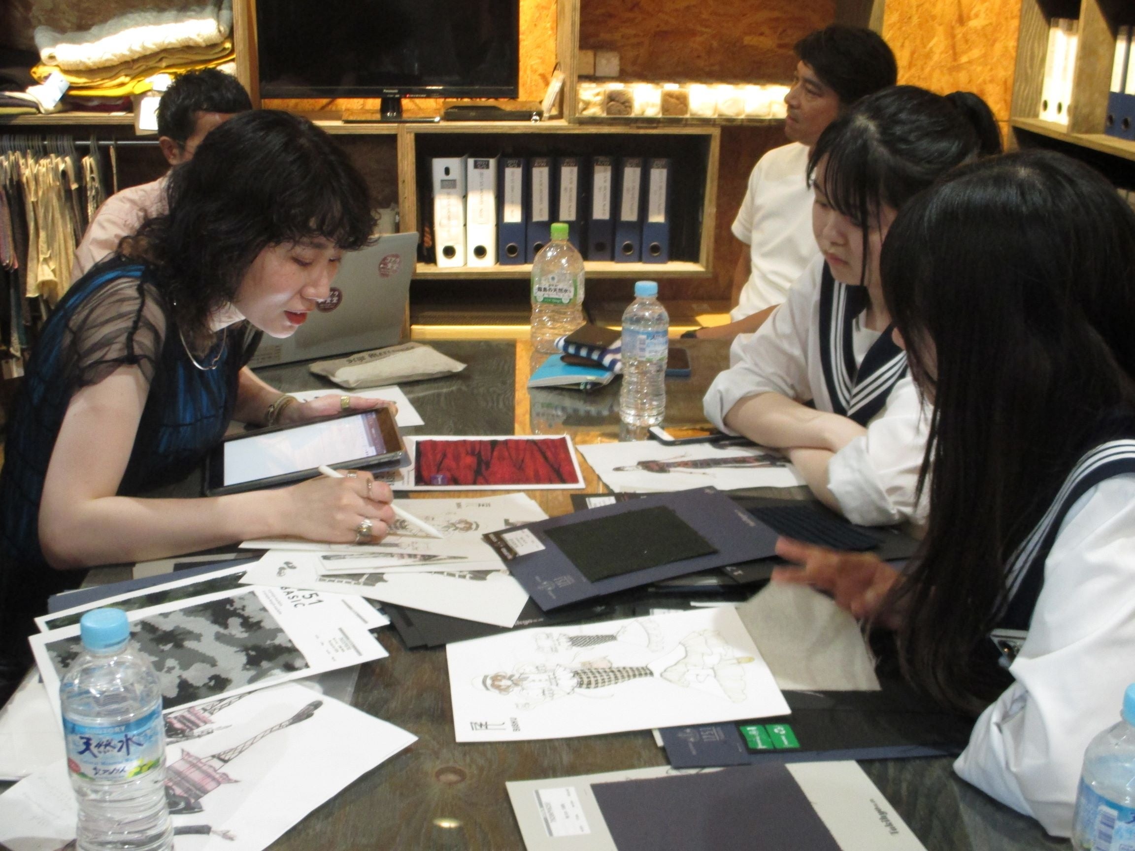 史上最大級のファッションフェスタ東京ガールズコレクションがプロデュースする「BISHU COLLECTION」では、地元一宮市の愛知県立一宮高校と修文学院高校の生徒が衣装制作に挑戦し、当社は高校生デザイナーの「こんな服を作りたい」に寄り添った生地の提案、提供を行いました。生地選びの際には一宮工場での紡績工程を見学してもらい、次世代を担う高校生たちが改めて尾州産地のものづくりのすばらしさを体感する機会を創出しました。
