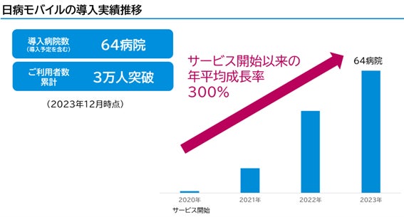 病院向けスマホ「日病モバイル」の導入病院数がサービス開始以来300%成長 導入先64病院・利用者数3万人を突破、また大阪と北海道に新拠点設立