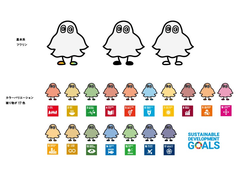 原画を預かりニューモアがデザインのアレンジを加え、より妖精らしさを出してフワリンが完成。SDGsの妖精という設定で、各回のテーマによって色が変化します。