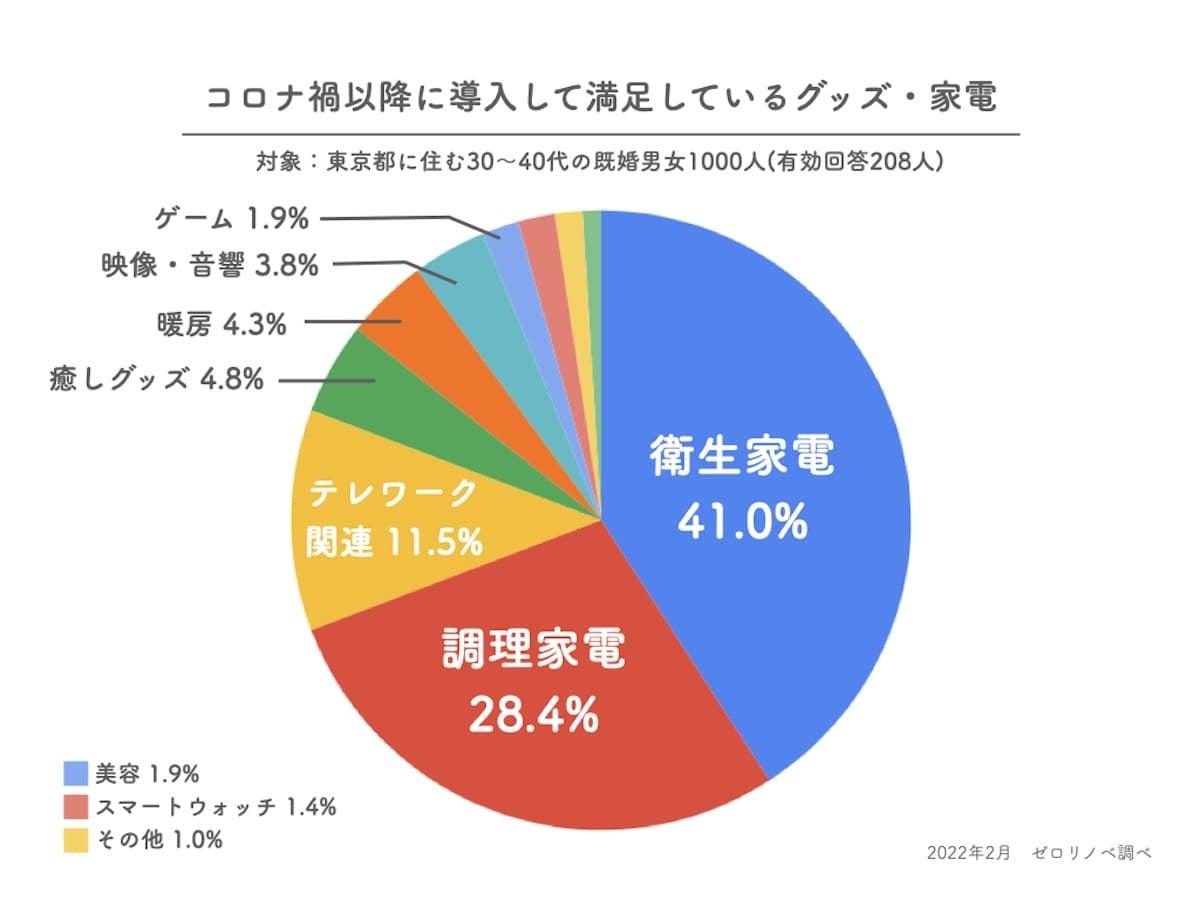コロナ禍以降に導入して満足しているグッズ・家電を聞いたところ、以下の結果となりました。