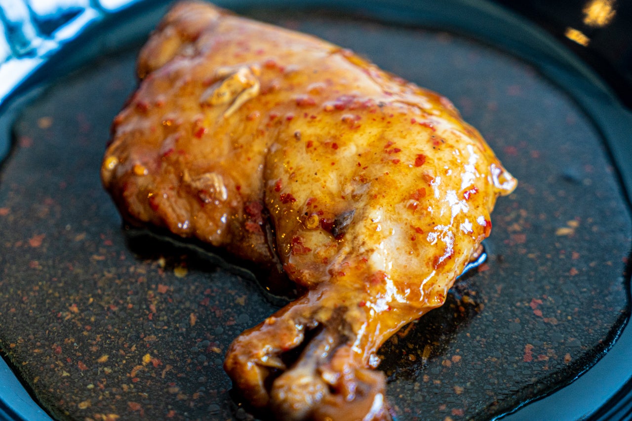 骨付きの鶏もも肉を、国産唐辛子とハバネロを使ったテリヤキソースで甘激辛に仕上げました。