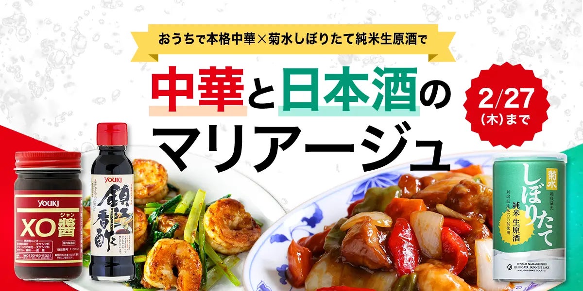 ユウキ食品株式会社(本社:東京都調布市、代表取締役社長:田中秀和)は、菊水酒造株式会社(本社:新潟県新発田市、代表取締役社長:髙澤 大介)、料理SNS「スナップディッシュ」を運営するスナップディッシュ株式会社(本社:東京都武蔵野市、代表取締役:舟田 善)と共同で、日本酒と中華料理をマリアージュさせる新体験の提案を行います。