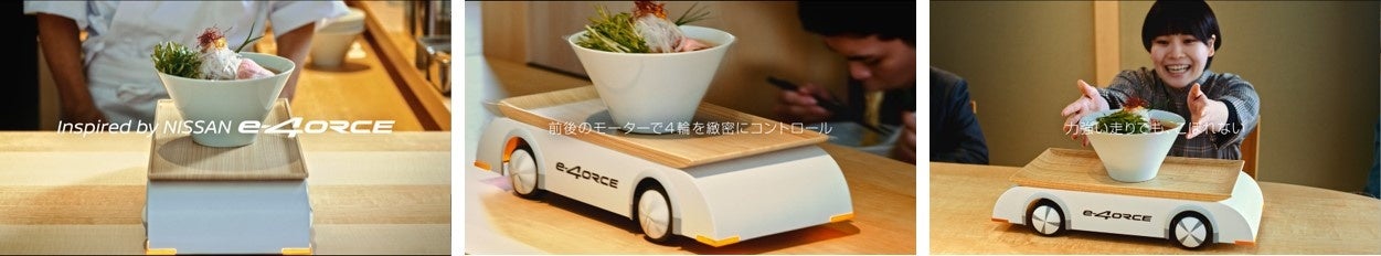 日産自動車株式会社(本社:神奈川県横浜市西区)は、技術の日産が誇る“ブレない、揺れない”新たな電動化技術「e-4ORCE」に焦点を当て、ラーメンをテーマにした「e-4ORCE ラーメンカウンター」コンセプトムービーを3月7日(月)より公開しました。また、コンセプトムービーの公開に際し、3月18日(金)より日産グローバル本社ギャラリーにて「e-4ORCEラジコン体験イベント」を開催いたします。本イベントは、お客さまがラジコンを操作し、特設コースに設置されたゲートをラジコンカーで潜り、スロットで回るラーメンの画像を揃えて、ラーメンの完成を目指すことで、実際に「e-4ORCE」の特徴を直感的に体験出来るイベントです。