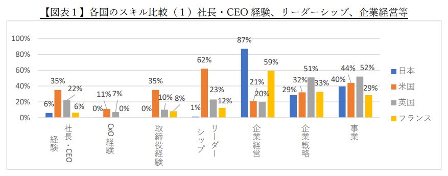 図表1では、社長・CEO 等の経験、リーダーシップ、企業経営等のビジネス全般について示して います。