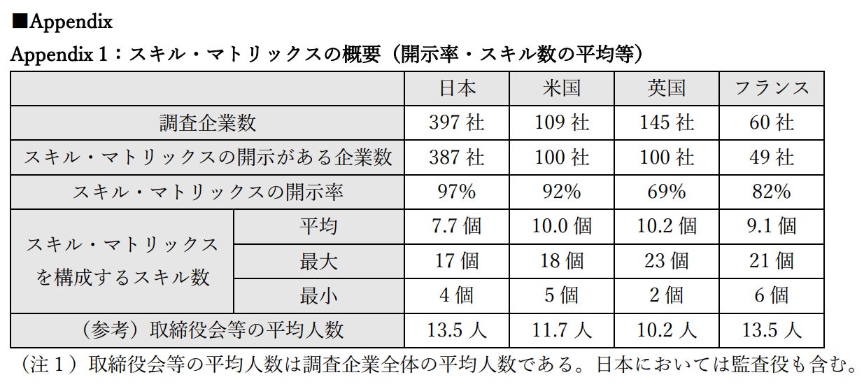 日本企業と米英仏企業の取締役会のスキル・マトリックスを比較し、求められるスキルや経験の内容およびスキル・マトリックスの位置付けを明らかにする