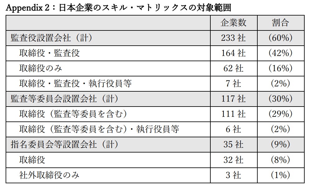 HRガバナンス・リーダーズ株式会社(代表取締役社長CEO 内ヶ﨑 茂、以下 「HRGL」)は、日米欧のスキル・マトリックスに関する調査を行いましたので、その結果を公表いたします。本調査では、日本、米国、英国、フランス企業の取締役会等におけるスキル・マトリックスおよび米英仏企業の性別・国籍・民族に関するダイバーシティの開示状況について調査しています。