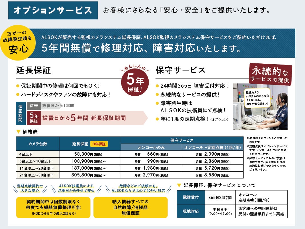 ALSOKでは、設置目的、運用方法、監視場所、予算に加え、自然環境、カメラに対する心理的な効果を配慮するなど様々な条件やニーズに合わせた、効率的で死角の少ないカメラ配置、撮影した膨大な映像データの保存や、事件・事故が発生した際の警察機関への映像記録の提出などの運用する方が効率的に活用できるシステムをご提案しています。