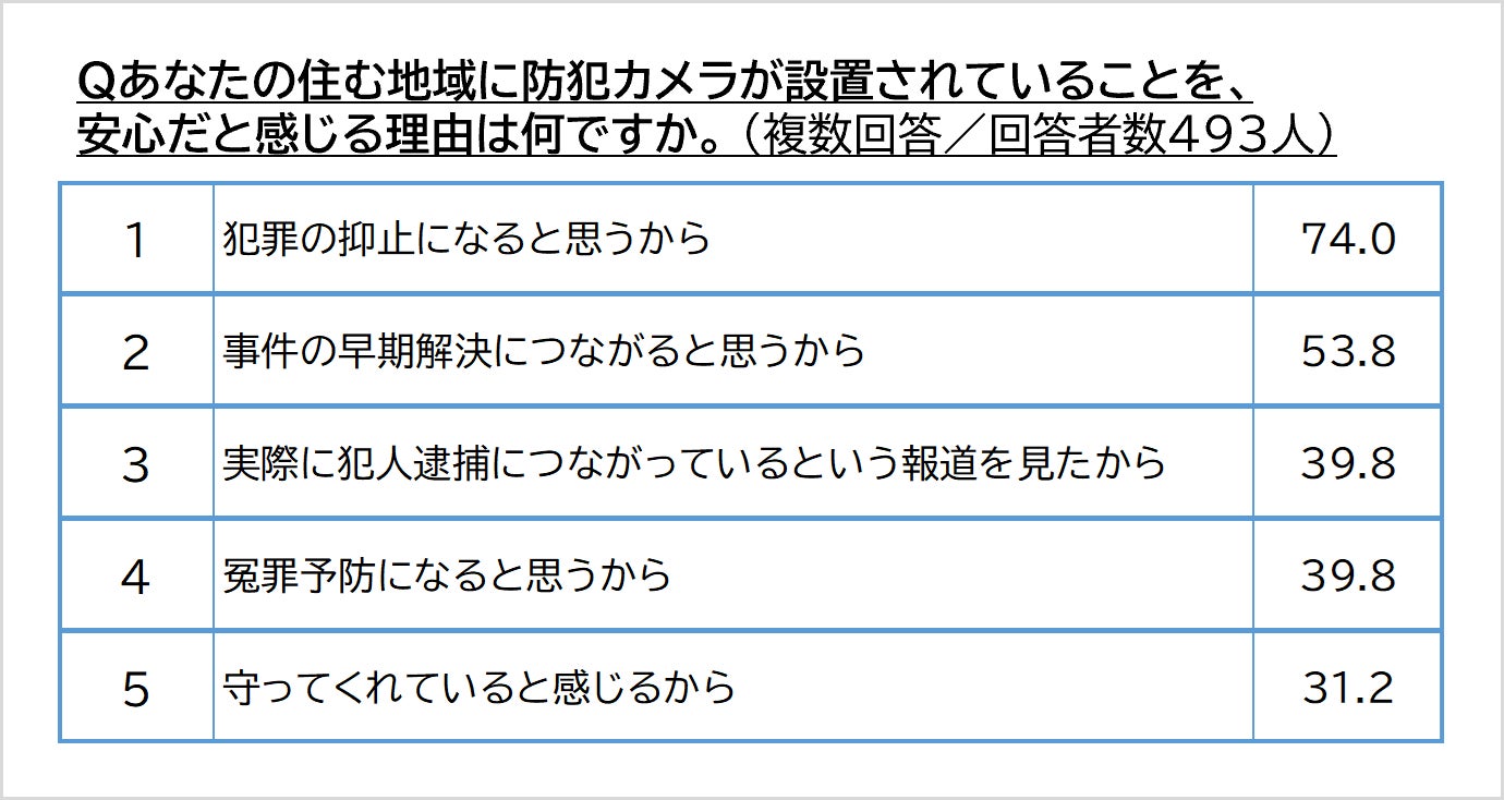 Qあなたの住む地域に防犯カメラが設置されていることを、安心だと感じる理由は何ですか。