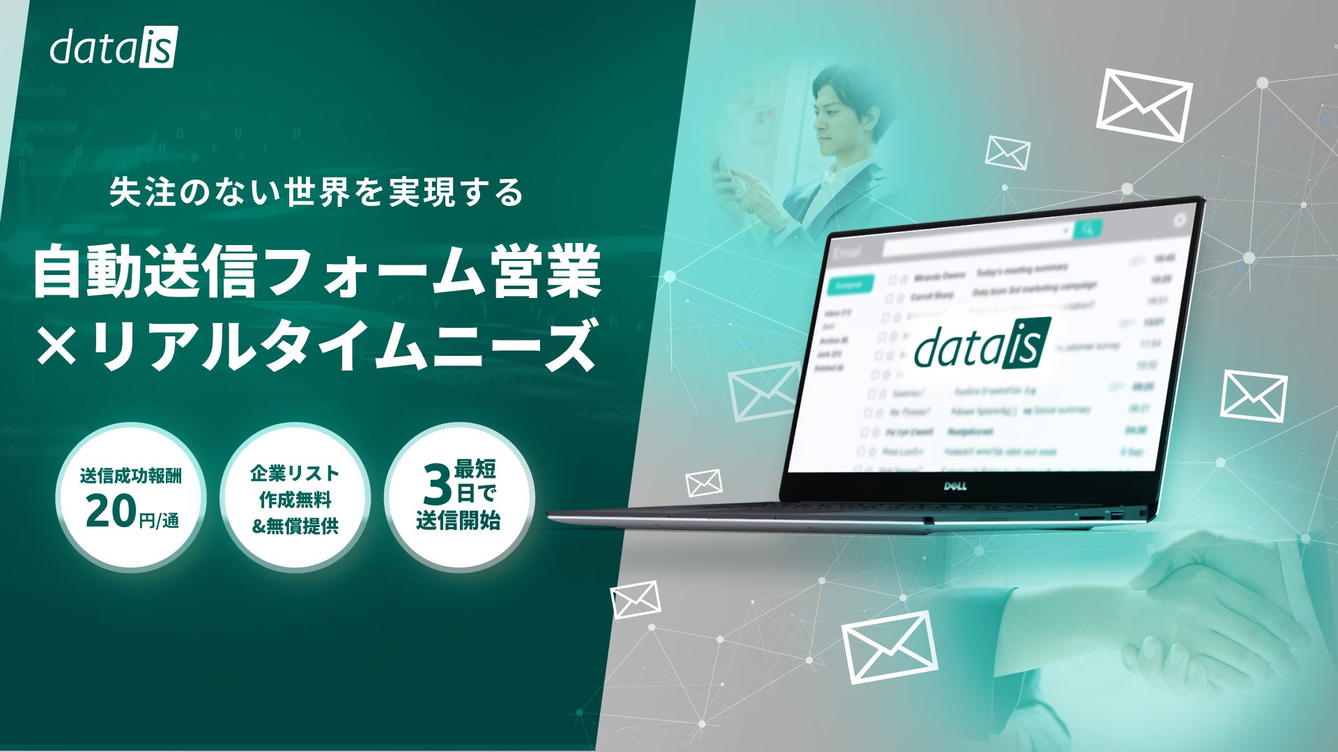 まずはdataisのデータベースをご活用していただくため、今回のコーポレートサイトのリニューアルに伴い、アウトバウンド支援サービス「datais Form」の初期費用無料キャンペーンを実施します。