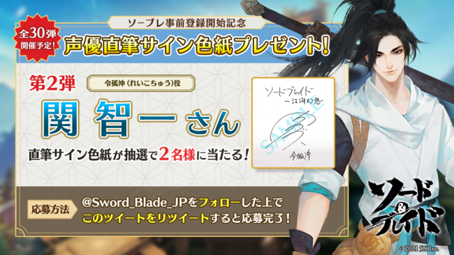「ソード&ブレイド」のキャラクター紹介PVの公開にあわせて、関智一さん、阿澄佳奈さんを含む、全30弾の声優直筆サイン色紙が抽選で当たるプレゼントキャンペーンを開始いたしました。
