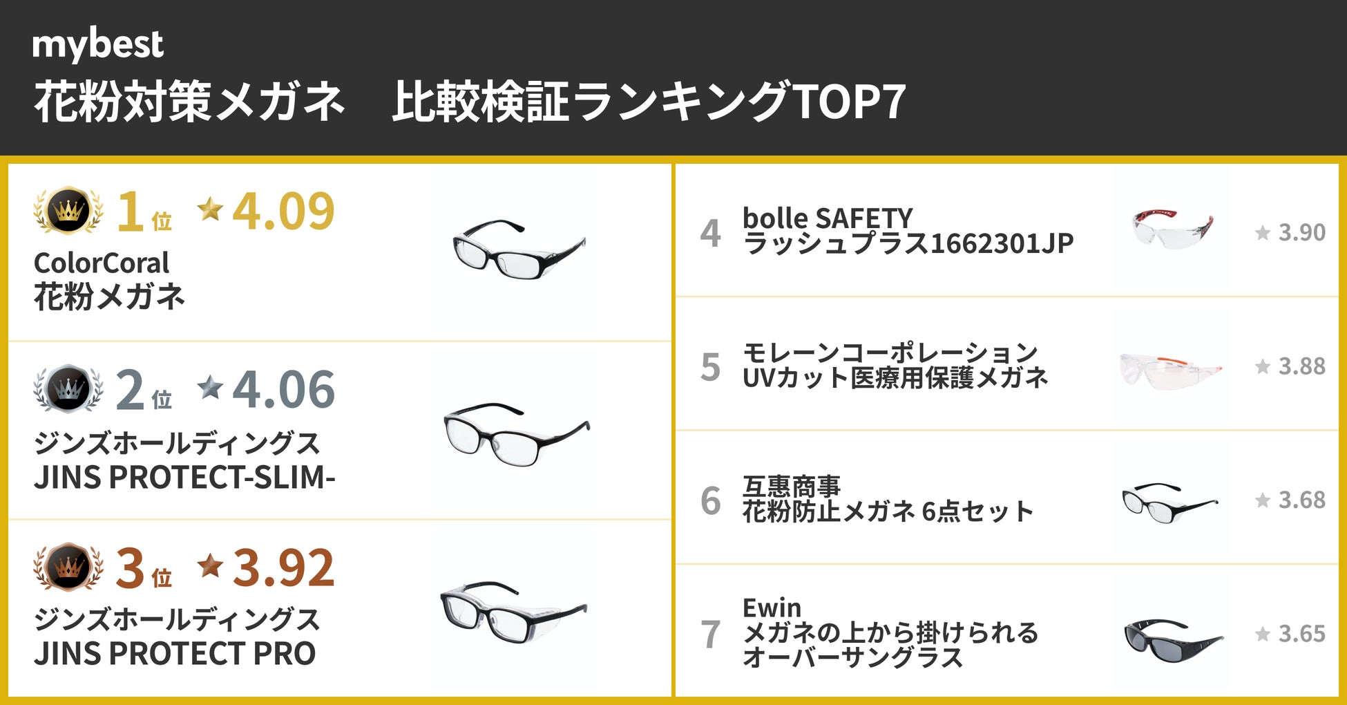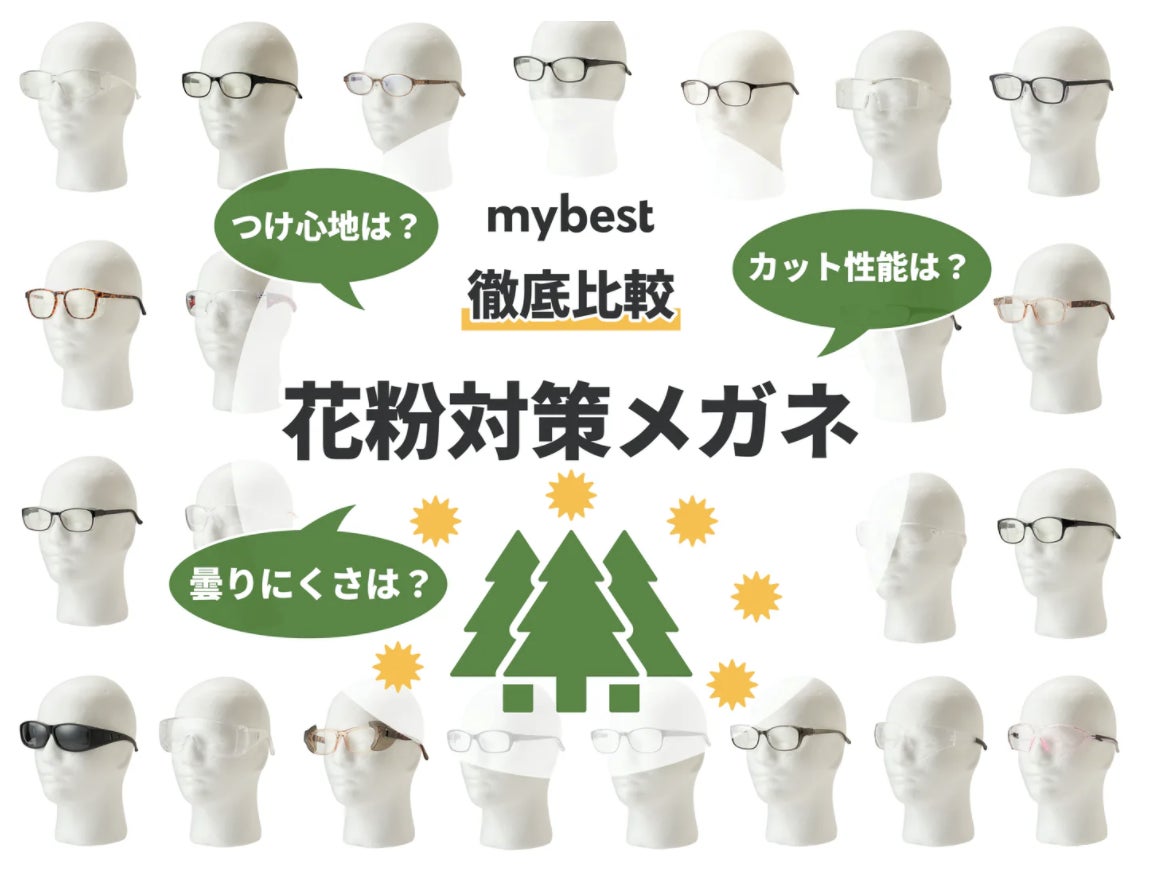 花粉対策メガネの実際のカット性能やつけ心地、曇りにくさは?花粉対策のアンケート調査と人気23商品の比較検証結果を発表 - mybest