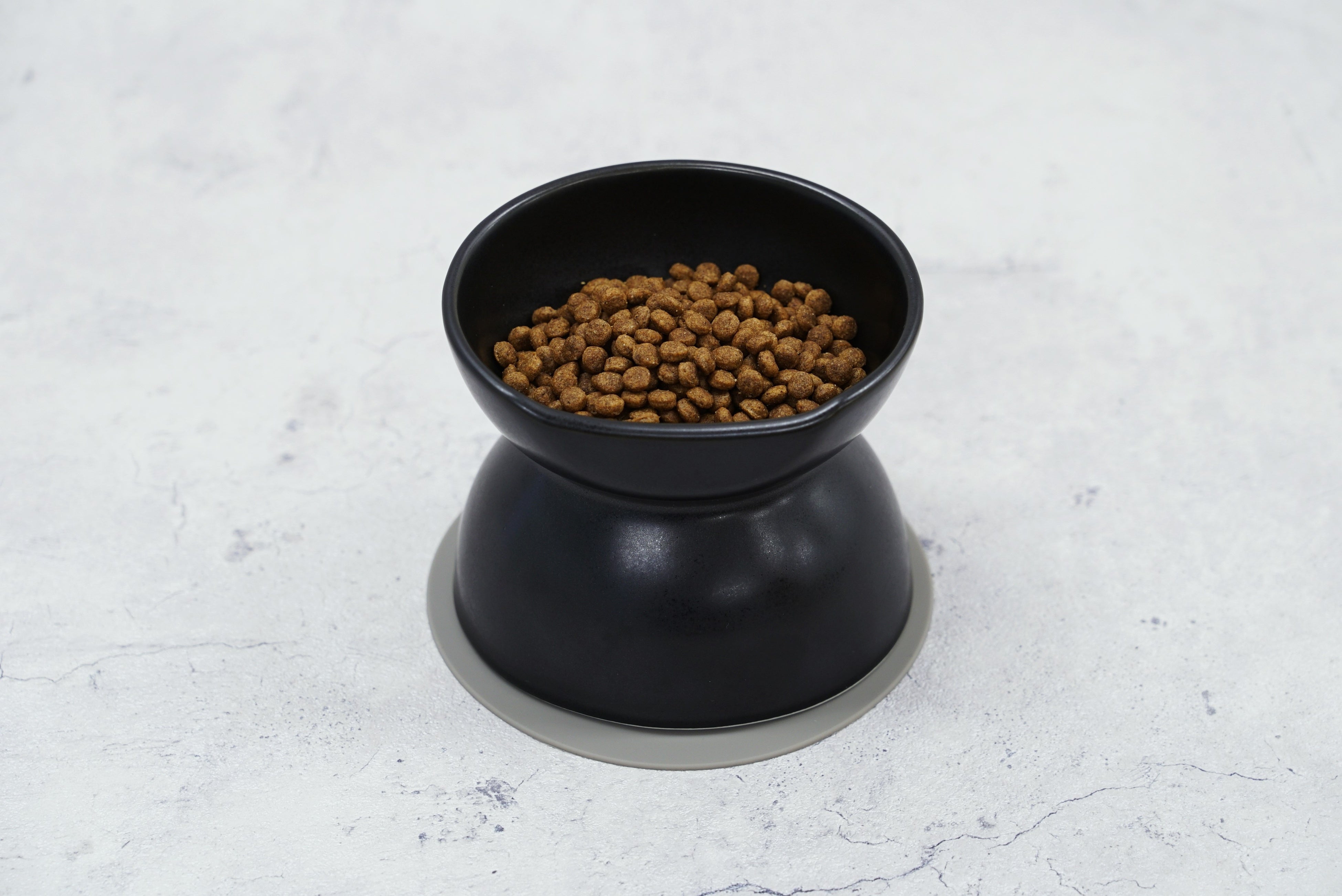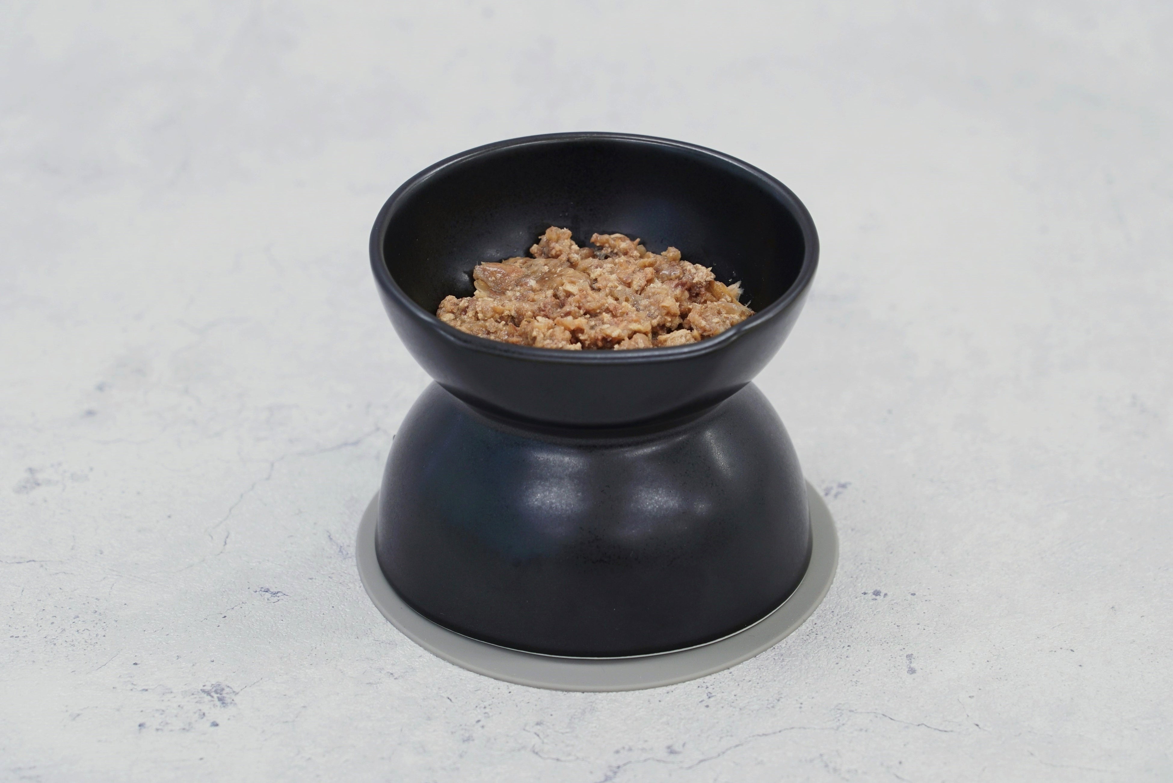 高さ約9.4cmのフードボウルは、体高20cm前後の超小型犬または猫が食事をしやすい高さです。また、食事中に食器が動いてしまうストレスが軽減されるように、シリコーンマットもセットになっています。