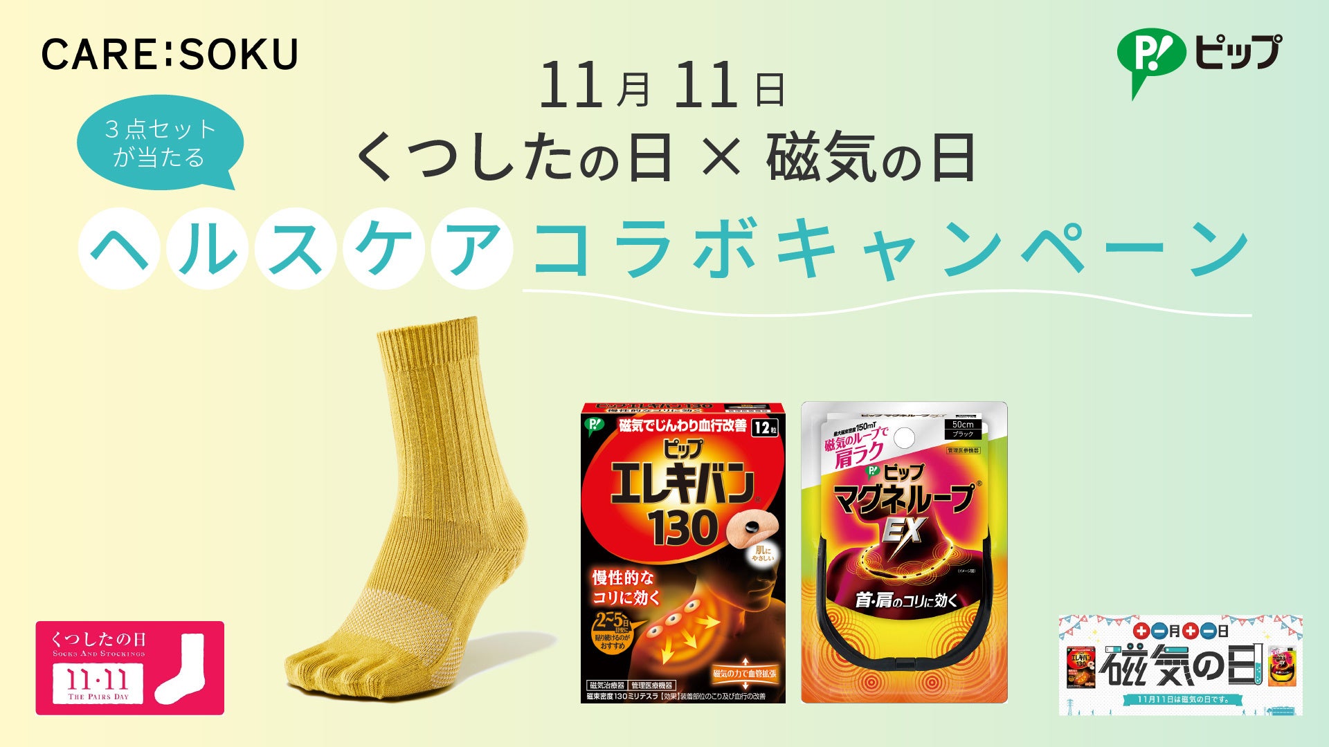 【11月11日】くつしたの日×磁気の日 ケアソクとピップが健康コラボ!X(旧Twitter)で合同プレゼントキャンペーンを実施!