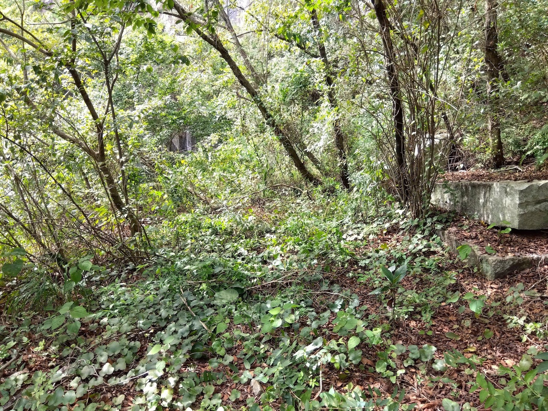 エリア内の森にも御影石が残っており、まるで遺跡のような雰囲気を楽しめます。