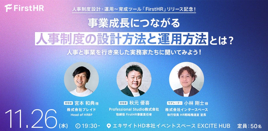 ベンチャー・中小企業向けのHR総合支援サービスを行うProfessional Studio株式会社(本社:東京都中央区 代表取締役:市川 龍太郎 以下「Professional Studio」)は、企業の人事、HRBP、経営者の方向けに、「“事業成長につながる”人事制度設計と運用方法について」のイベントを2025年11月26日(水)に開催いたします。
