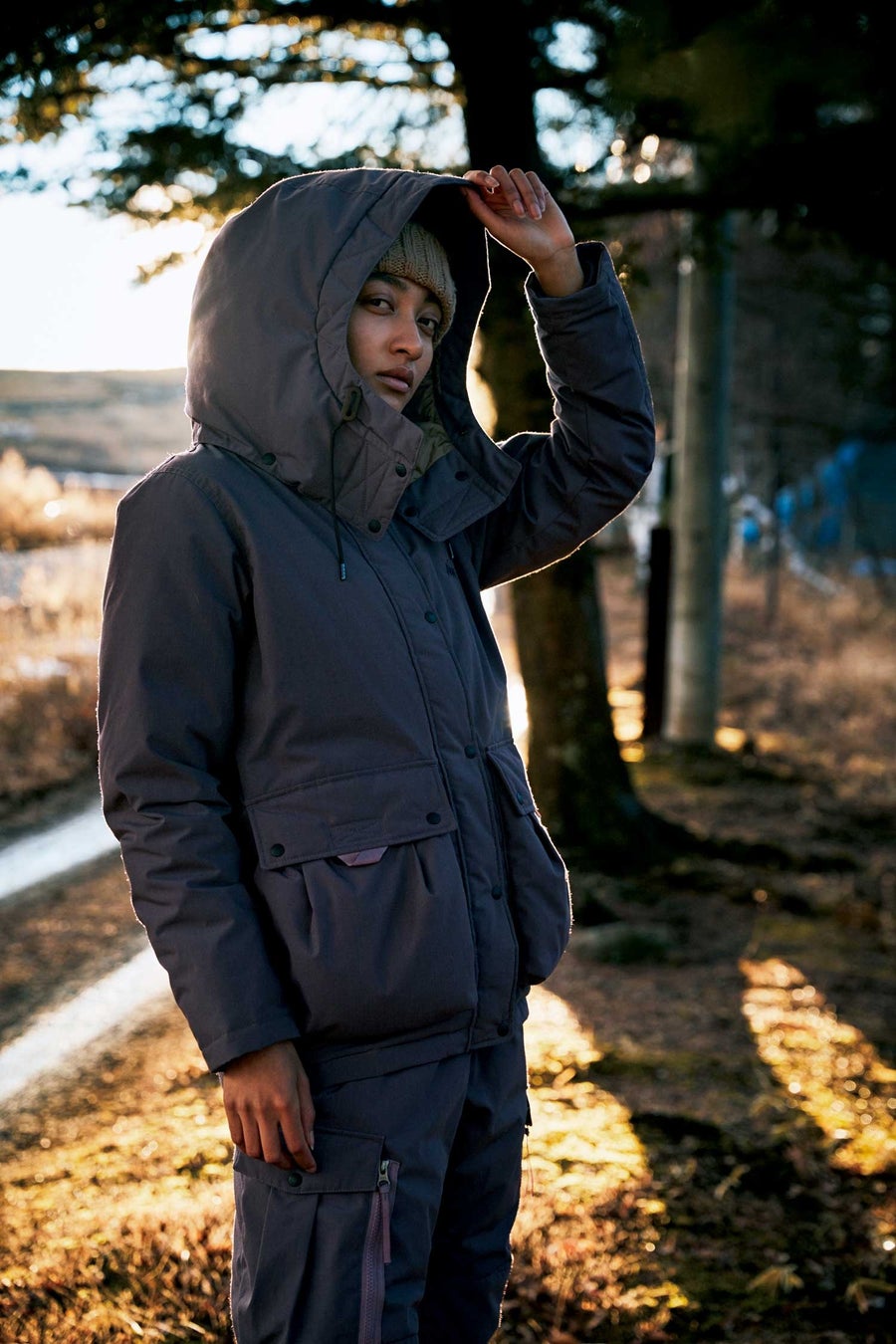 ウィメンズのダウンジャケットは、メンズのデザインを踏襲しながら、フロントのファスナーポケットを排してスタイリッシュに設計。フロントポケットのサイドには、ハンドウォーマーポケットも備えています。