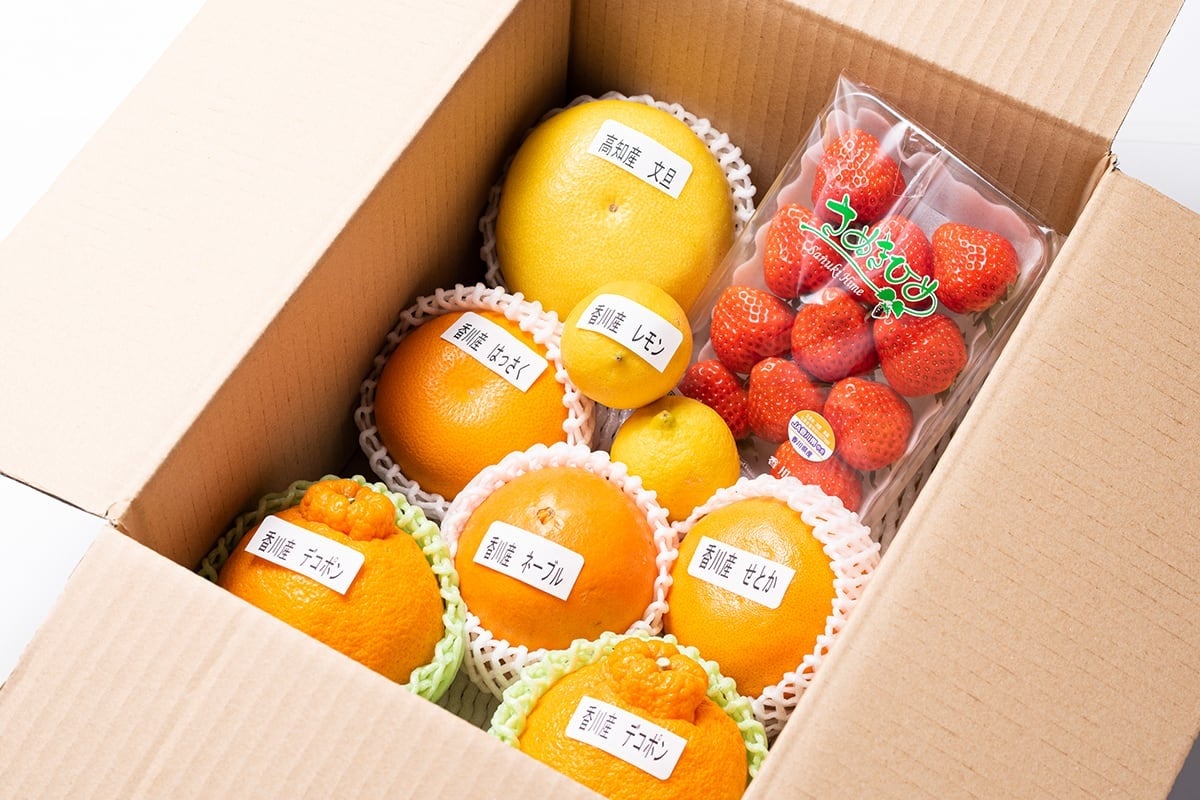 暖かく晴れの日が多い気候で太陽の恵みをたっぷりうけたフレッシュな郷土野菜や香川オリジナル品種の青果。