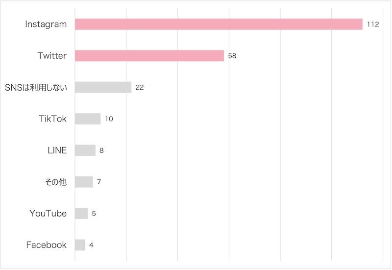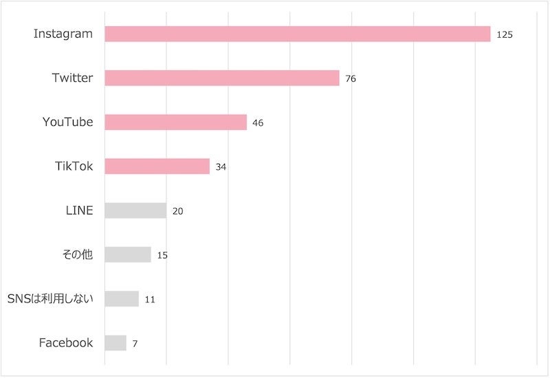 次いで「Twitter」「YouTube」「TikTok」が続くという結果になりました。