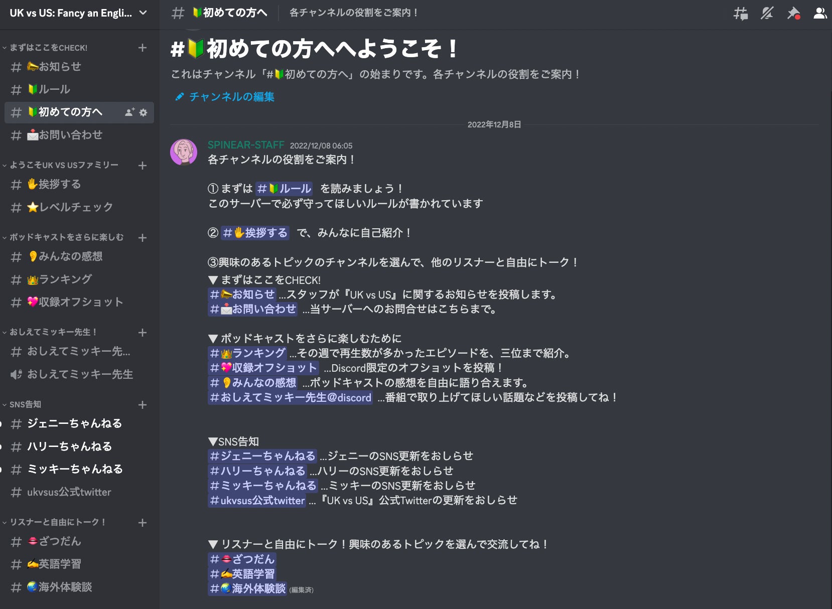 Discordサーバー『UK vs US: Fancy an English Battle?』では、リスナーとホストの絆をより深めつつ、英語学習の助けになるようなリスナーコミュニティを提供いたします。