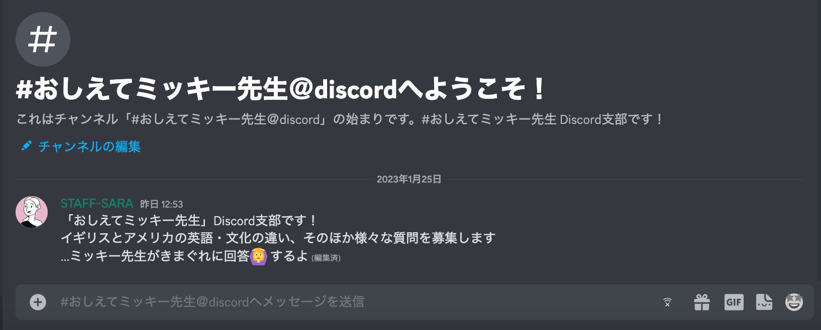 チャンネル 「#おしえてミッキー先生 @Discord」 では、リスナーからの質問を募集いたします。