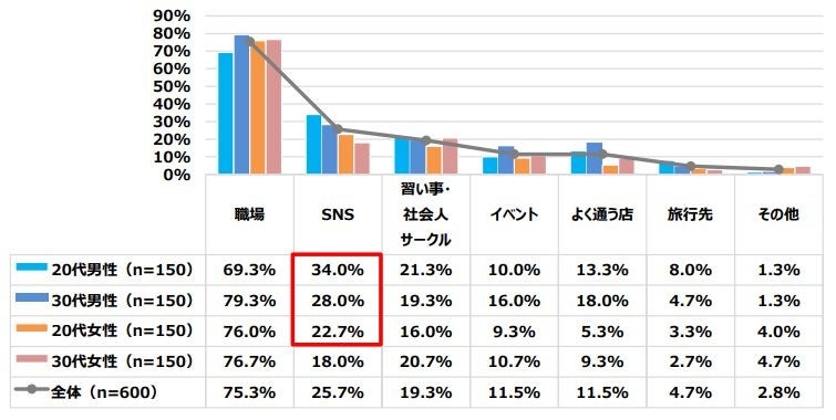 「SNS」は「習い事・社会人サークル」よりも割合が高い結果に。