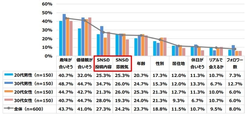 「趣味・価値観が合いそう」のほか、SNSの投稿内容や雰囲気も重視。