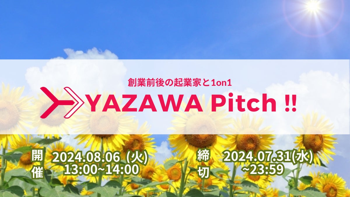 シード特化の独立系VCであるYazawa Venturesは、ピッチイベント『YAZAWA Pitch !!』を開催いたします。