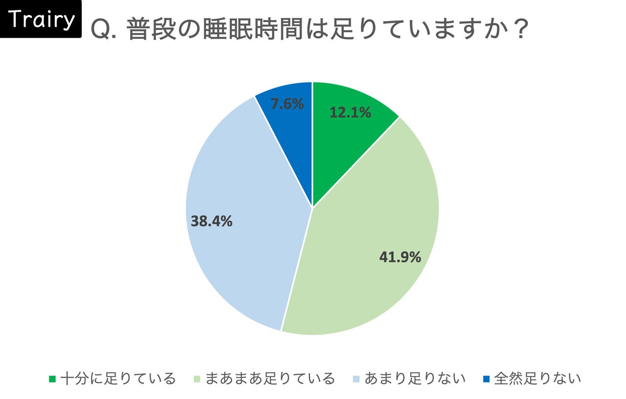 平日の睡眠時間が7時間だと約6割、8時間だとほとんどの人が十分だと感じられることがわかりました。
