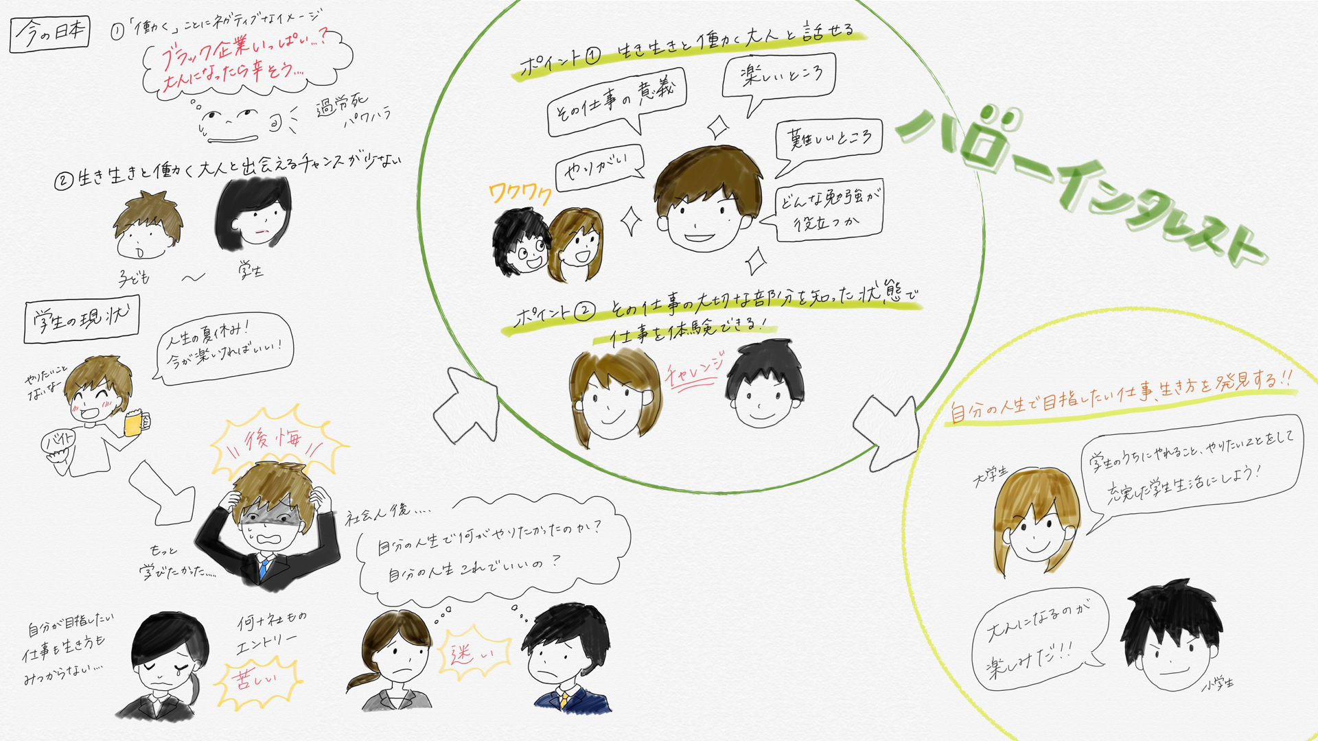 子どもから学生にかけて前向きに働く大人や企業に出会える機会に乏しい日本で、ロールモデルになり得る大人や企業から仕事の話を深く聞けたり、その仕事の体験を通して目指したい仕事や生き方を見つけられる事業です。