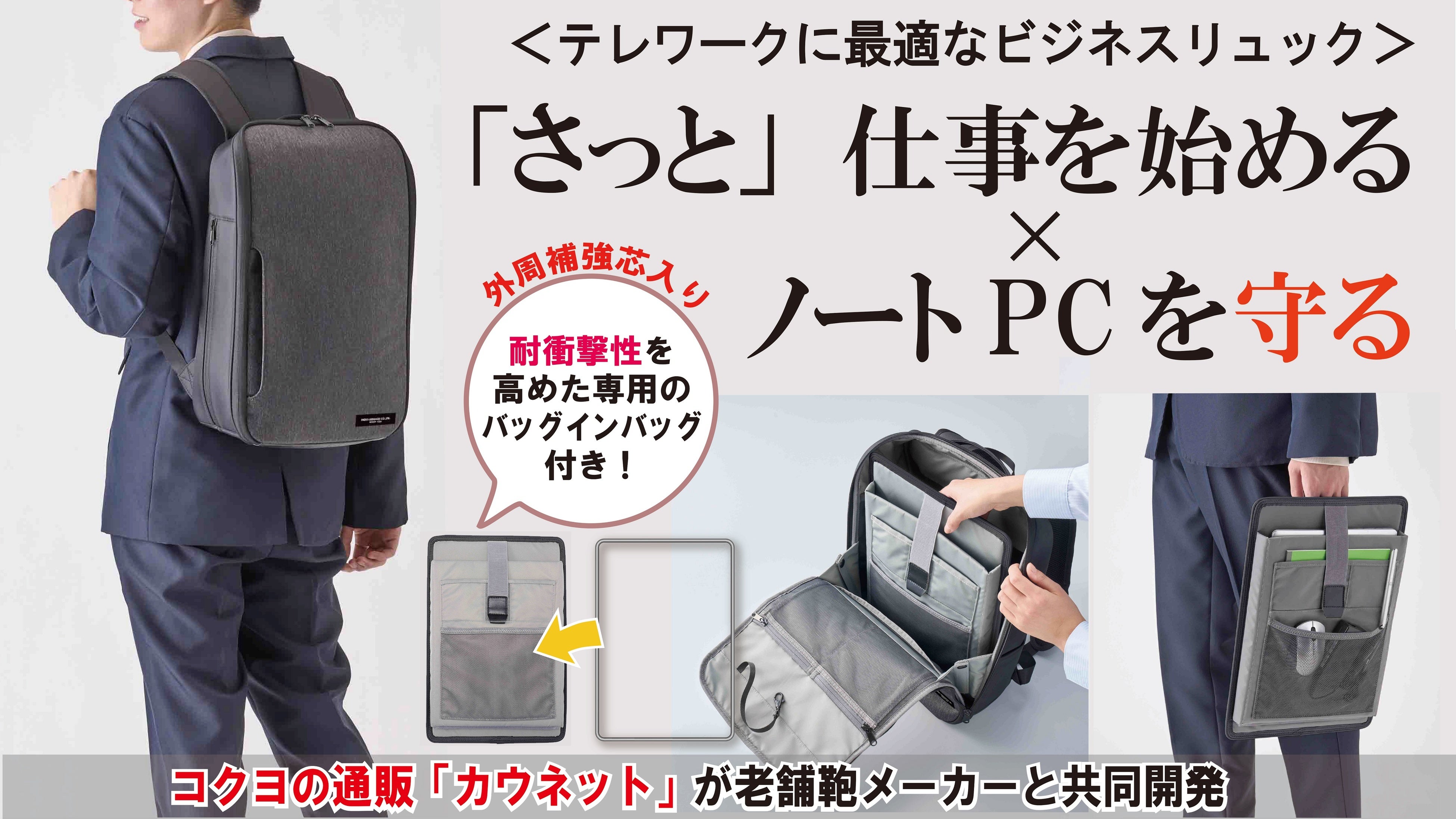 コクヨグループでEコマースサービスを提供する株式会社カウネット(本社:東京港区/代表取締役社長:宮澤典友 以下「カウネット」)は「ノートPCを衝撃から守るビジネスリュック」をクラウドファンディングサイト「Makuake」にて、