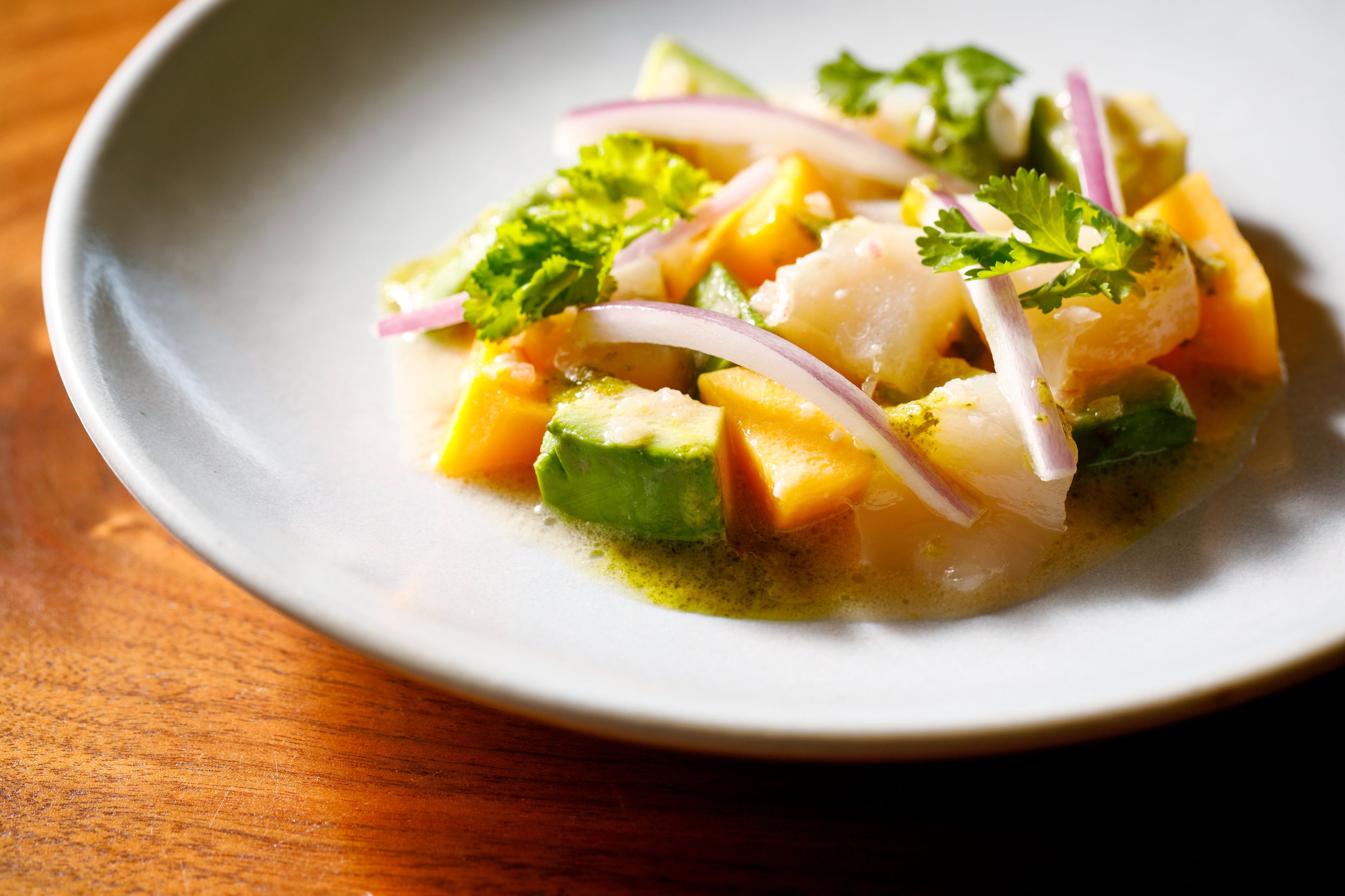帆立貝とパパイヤのセビーチェ ココナッツ アボカド