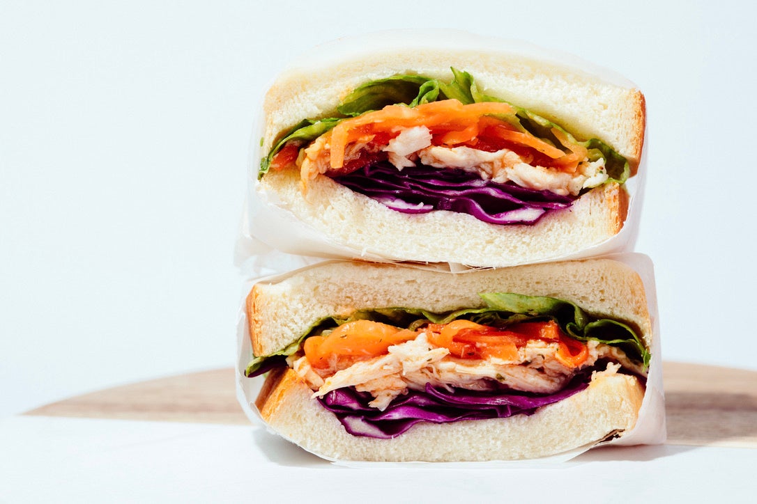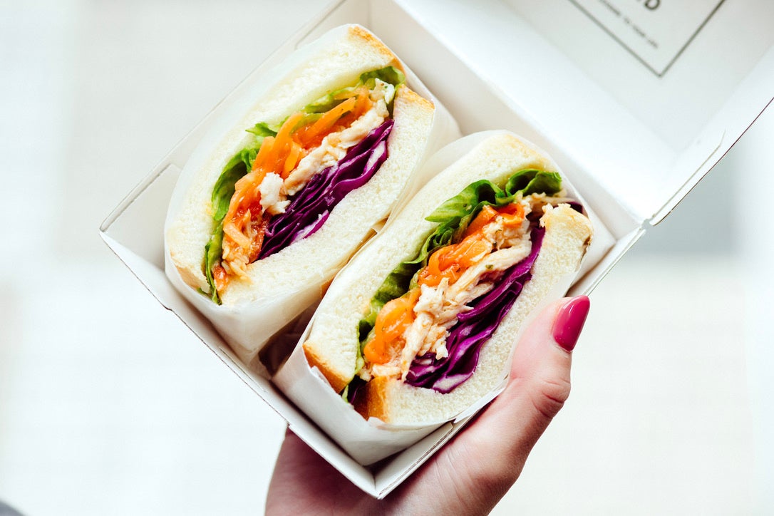 サンドイッチシリーズの第一弾「STEAM BREAD herb chicken sandwich with ふつうのマヨネーズ」は、長崎県産“雲仙しまばら鶏”を使い、ハーブとオリーブオイルで一晩マリネしてしっとり柔らかく仕上げたチキンを自家製のキャロットサラダやフレッシュベジと一緒に「STEAM BREAD」でサンドしました。味付けは「ふつうのマヨネーズ」と岩塩のみを使い、シンプルでありながら贅沢なサンドイッチに仕上げました。カラフルなビタミンカラーのサンドイッチは見た目にも楽しい一品です。
