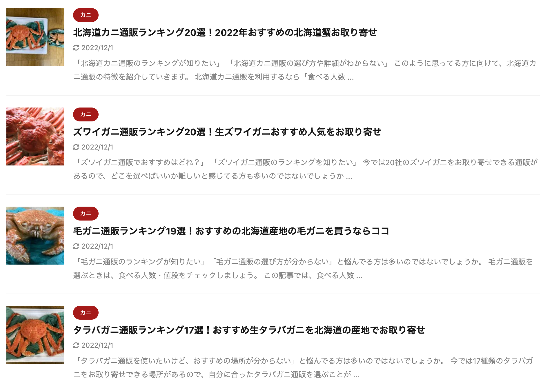 今現在は年末年始に食べたいカニのカテゴリーとおせちの2つのカテゴリーで記事作成しています。