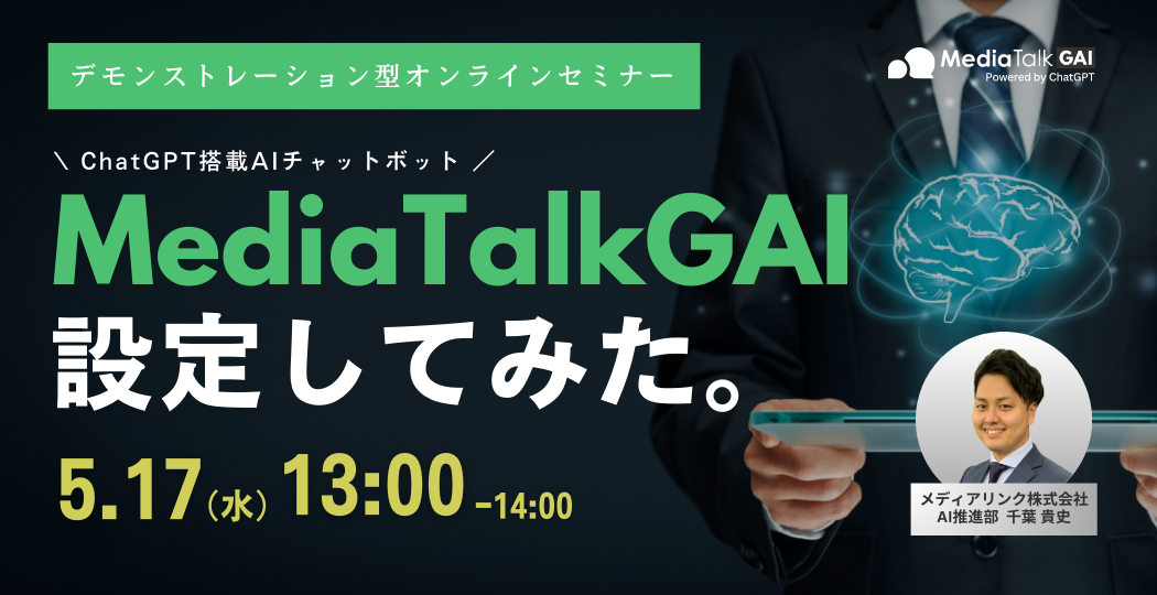 ChatGPT搭載AIチャットボット「MediaTalkGAI」公開デモンストレーションWebセミナー5/17(水)13:00~開催!