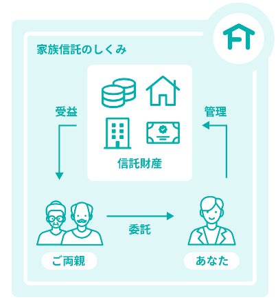 家族信託 とは、判断能力があるうちに大切な財産を信頼できるご家族に託すことにより、たとえ認知症などにより判断能力が低下した後でも、ご本人の希望やご家族のニーズに沿った、柔軟な財産の管理や運用を実現することを目的とした仕組みです。
