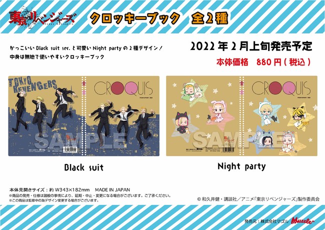 TVアニメ『東京リベンジャーズ』より、 Black suit ser. Night party トレーディング缶バッジ、アクリルスタンドバッジ、クロッキーブックの受注開始!
