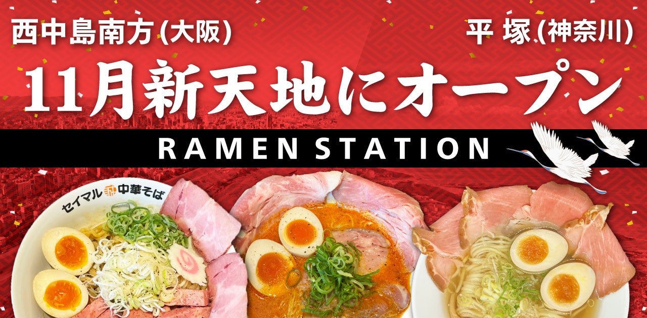 西中島南方店は11月1日(水)本日オープン!平塚店では11月17日(金)のプレオープンでラーメン100杯無料キャンペーンの大盤振る舞いが決定!食欲の秋は「ラーメンステーション」へ行こう!!