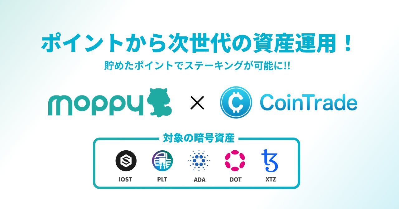 「CoinTrade」でポイントサイト「モッピー」と連携PLT・IOST・ADA・DOT・XTZへのポイント交換開始